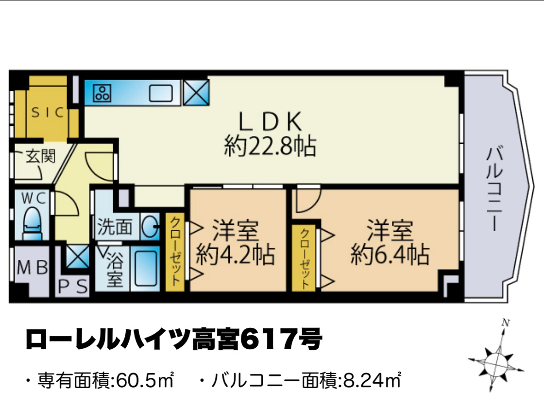| 専有面積 | 60.5㎡ ※壁芯 |